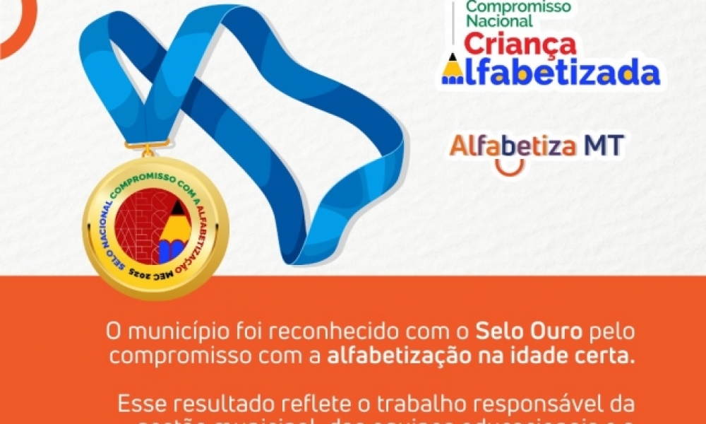 O município de Juscimeira celebra mais uma grande conquista para a Educação: pelo segundo ano, fomos reconhecidos com o Selo Ouro no Compromisso Nacional Criança Alfabetizada, do programa Alfabetiza MT. Esse reconhecimento reafirma o comprometimento da gestão municipal e de toda a rede de ensino com a alfabetização na idade certa, um dos pilares mais importantes para o futuro das nossas crianças. A certificação destaca que Juscimeira mantém práticas pedagógicas consistentes, planejamento técnico eficiente e investimentos contínuos em formação, acompanhamento e melhoria das condições de aprendizagem. Trata-se de um resultado que não acontece por acaso ele nasce do trabalho sério, responsável e dedicado de todos os profissionais envolvidos