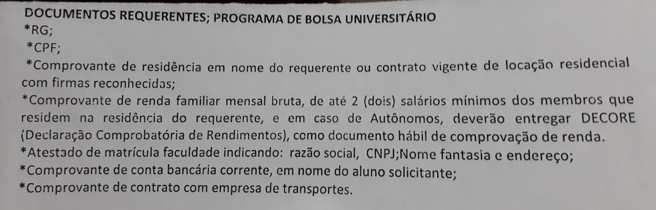 “Para obter o beneficio, é necessário que o candidato possua renda familiar mensal bruta de até dois salários mínimos e estar devidamente matriculado em cursos preparatórios, profissionalizantes e ensino superior”, ressalta a secretária.