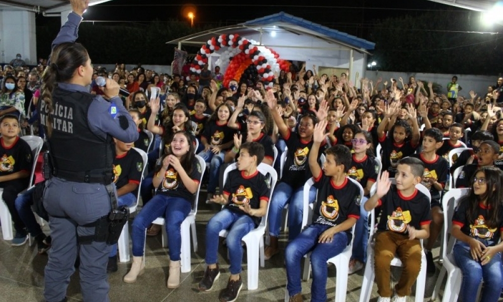 170 alunos do 5º ano que estudam na sede e distritos participam de formatura do Proerd em Juscimeira